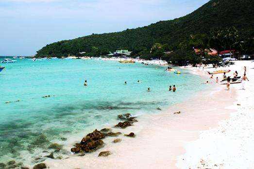 珊瑚岛有两个长长的白沙滩,非常适合游泳和潜水,在这里可以见到很多潜水爱好者和水上降落伞的爱好者,有很多的人来这里享受阳光的沐浴,这里也有海中漫步和骑大象的旅游项目,游客们可以体验一下。