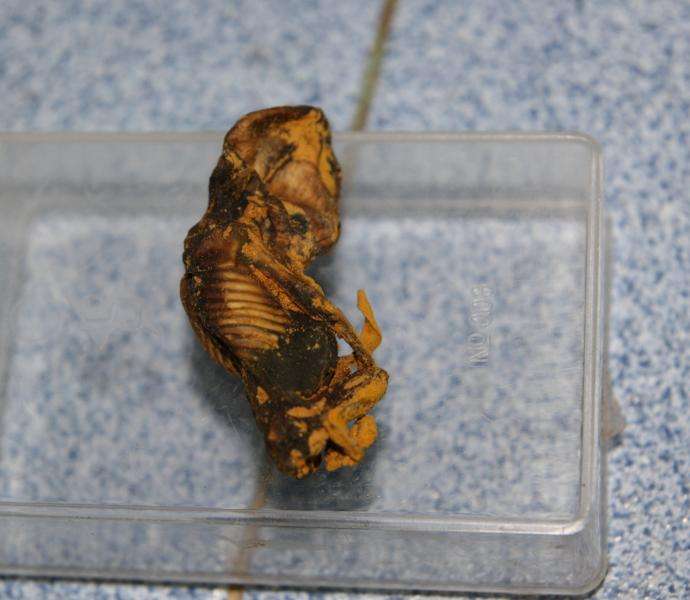 挖至棺材表面时,把盖打开见大肚婆躺在棺木裡;巫师就拔出法刀( Mee mo)举向天,口中唸出经咒,然后就把大肚婆持双手合什绑住的绳子割断(此绳泰语称为‘玛打桑’,以经绳绑著死者的双手成合什形,插上花及香枝,希望死者持花及香支朝往西方极乐世界,此乃泰人习俗)割断经绳之后,巫师再另持经咒由大肚婆的肚子正中割开来,将肚裡的小童尸骸挖出,切断肚脐带后,用一张写满咒文的白布包著婴骸。之后动手把母尸整理一番,盖回棺木,把泥土铺好,得要做到不露痕迹,像根本没有被人挖掘过一般。