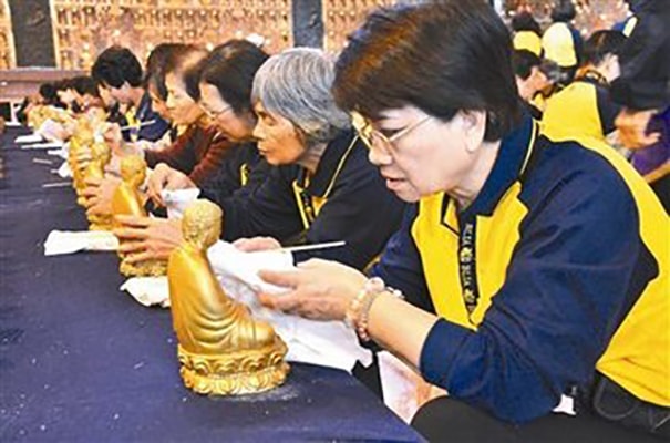 第三、浴佛毕用软毛巾将水擦干净,将佛像放置原处。